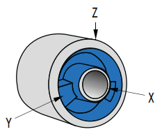 Die Buchsen sind für die hauptsächliche Belastung in radialer (Z-Richtung), wie auch axialer Richtung (X-Richtung) gestaltet, können aber auch geringe kardanische und torsionale Verformungen aufnehmen.