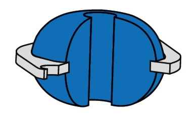 Außen im Flansch der Trägerscheibe sind Durchgangslöcher eingebracht. Ein versteifendes Metallteil kann mittig in den Elastomerkörper einvulkanisiert sein.