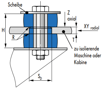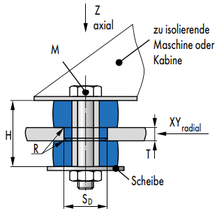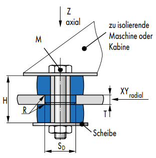 In der Richtung Z weisen diese Lager eine größere Nachgiebigkeit auf, was zu einer entsprechend höheren Isolation führt.