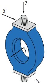 Die Hauptbelastungsrichtung ist die Längsachse der Gewindebolzen (Z-Richtung).
