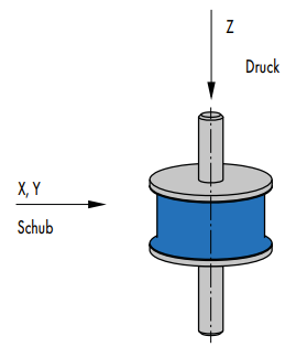 Die Hauptbelastungsrichtung entspricht der Schubbelastung X, Y, da hier die größten Isolationen zu erreichen sind.