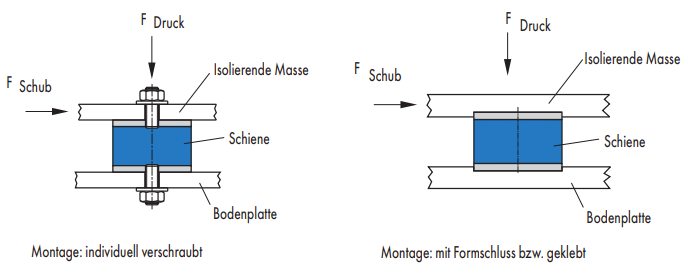 Schienen können auch ohne zusätzliche Verschraubung montiert werden, wenn die Einfederung deutlich größer ist als die max. Amplitude.