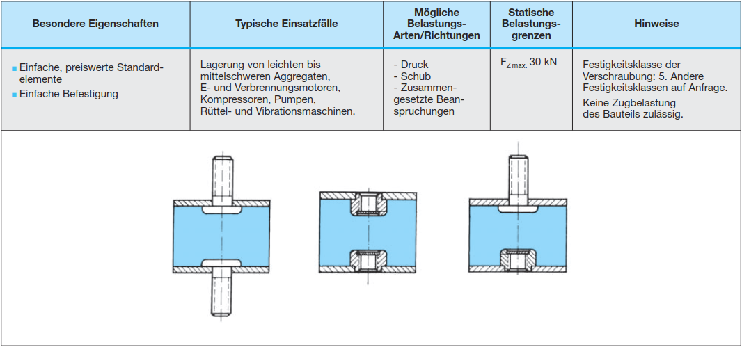 In den Katalogen sind zum Teil 3 Ausführungen enthalten (z.B. Maschinenfuß oder Konus), die folgender Gummihärte entsprechen: