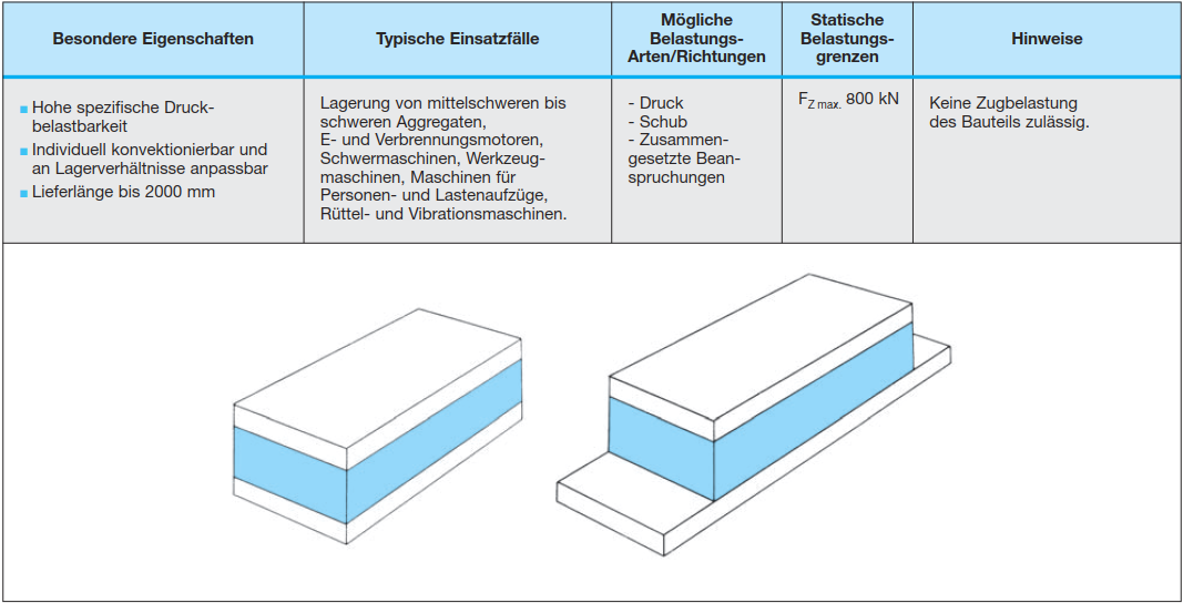 MEGI® Schiene ✚ detaillierte Datenblätter ✚ elastische Lager zur Schwingungsdämpfung & Schwingungsisolation von Körperschall