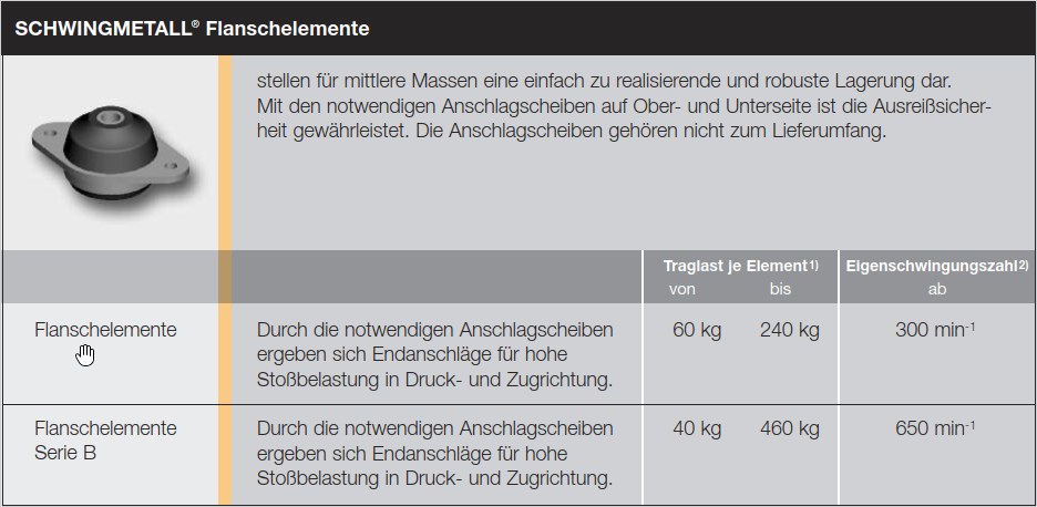 Schwingmetall® Flanschelemente ✚ detaillierte Datenblätter ✚ elastische Lager zur Schwingungsdämpfung & Schwingungsisolation von Körperschall