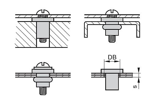 Verbindungselemente sind sehr einfache Schwingungsdämpfer aus Gummi-Metall, die ähnlich eines Dübels zur Befestigung von Verkleidungen verwendet werden.