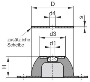 Hutelemente Typ H2 sind Maschinenfüsse, mit denen leichte bis mittelschwere Maschinen und Geräte schwingungs- oder stoßisoliert aufgestellt werden. Sie haben in der oberen Verschraubung eine Gewindeplatte.