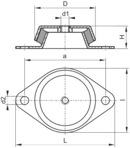 Maschinenfüße 2Loch Flansch, Typ H3 ✚ übersichtlich und schnell online kaufen ✚ große Vielfalt an Gewinden, Ø und Höhen ✚ detaillierte Datenblätter ✚ elastische Lager zur Schwingungsdämpfung & Schwingungsisolation von Körpersch