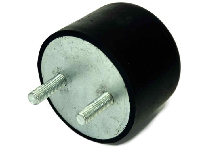 Kranpuffer als Gummipuffer mit zwei Aussengewinde reduzieren Stoßenergien beim Anschlag über ihre Einfederung und Dämpfung (Stoßdämpfung).