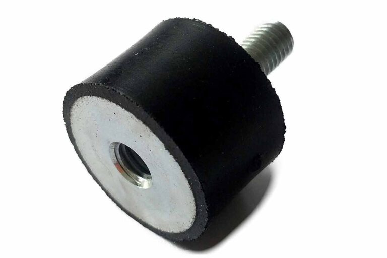 Gummipuffer Typ BZ mit Innen- und Außengewinde bestehen aus 2 Metallen, zwischen denen ein zylindrischen Gummi einvulkanisiert ist.