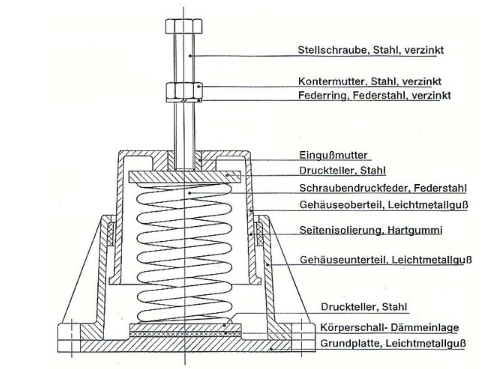 Stahlfederdämpfer verhindern sowohl die Übertragung störender Maschinenschwingungen auf das Fundament (aktive Isolation) als auch die Einwirkung von Bodenschwingungen auf schwingungsempfindliche Maschinen und Geräte (passive Isolation).